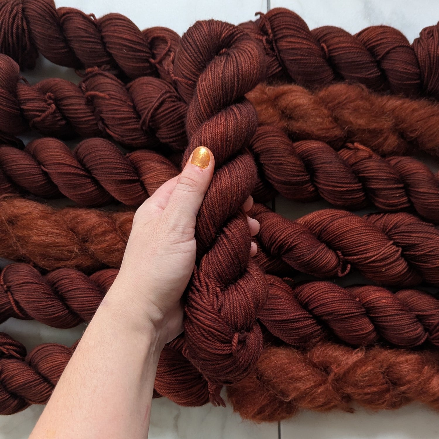 Cozy, moody colors inspired by the music of the Decemberists. Available dyed-to-order...