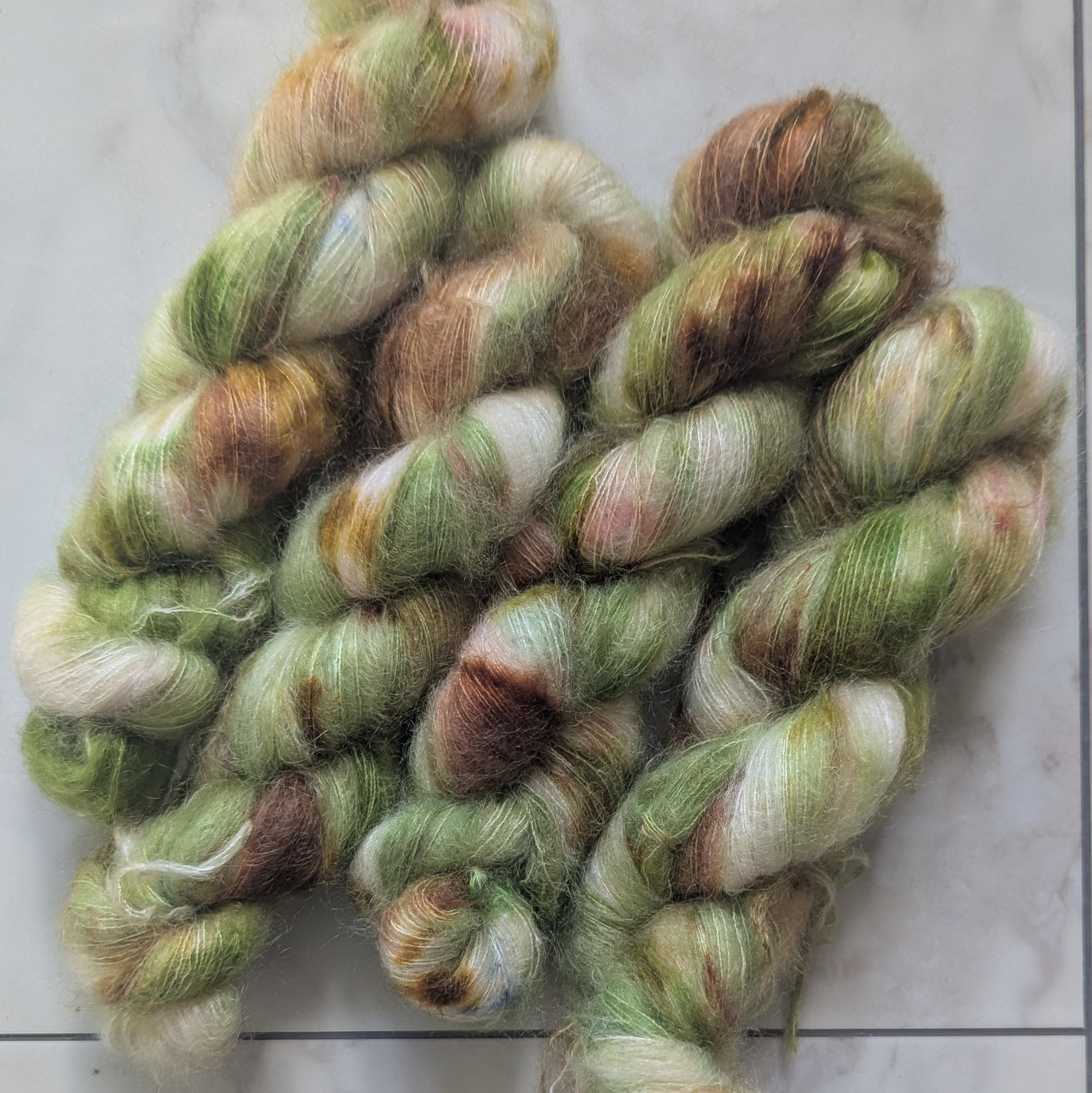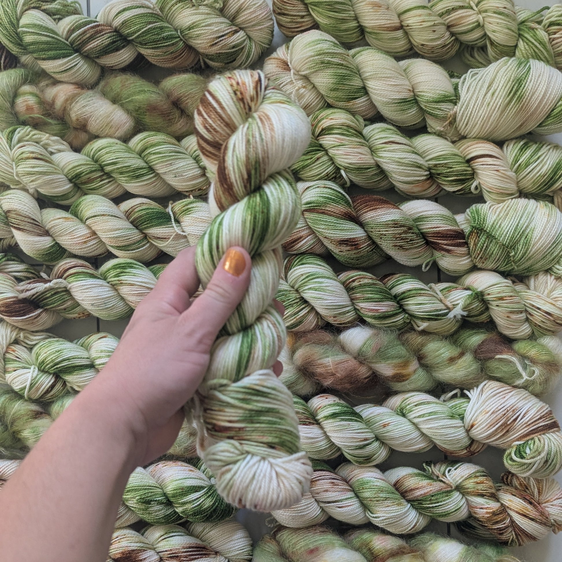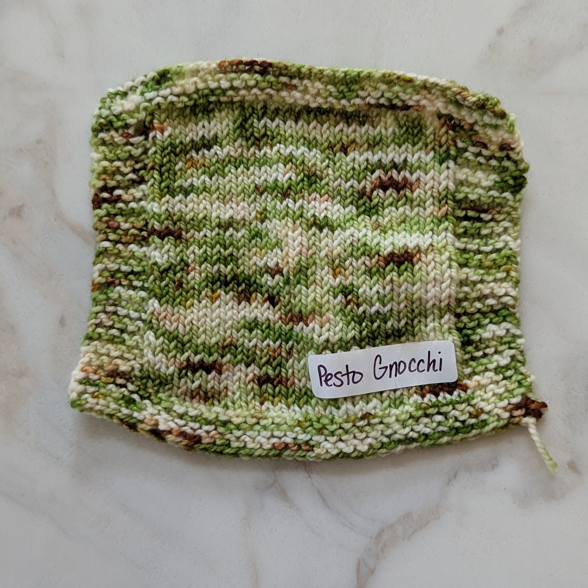 Our Pesto Gnocchi is layered on a creamy ivory base, with generous splashes of bright pesto green that show up in darker and lighter patches, much like dressed pasta. She's finished with swirls of toasty brown and peppered with nutty brown speckles.